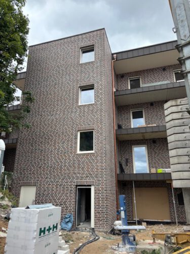 August 2025Bis auf die Balkongeländer ist die rückseitige Fassade fertig.